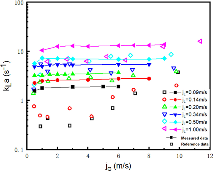 At this point, it is obviously seen that the calculated result of Eq. 17 is only correlated with K and the concentration of OH− at the inlet and outlet, which indicates that the volumetric mass transfer coefficient can be calculated with pH directly measured by a pH meter. HC is 0.04 mol/(L bar) at 298 K [20].