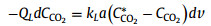 The water is expelled by ultrasound, so CCO2,0 is zero. Therefore, only CCO2,1, i.e., the concentration of carbon dioxide in the solution at the outlet, needs to be measured. Then volumetric mass transfer coefficient can be obtained by calculation.