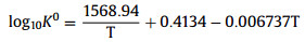 For the reaction represented by (step 2), the chemical equilibrium constant K was calculated by Hikita [17] with below equations:
