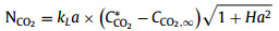 Both of which can be regarded as a first-order reaction. According to Danckwerts transfer model, the CO2 mass-transfer rate NCO2 in the presence of a first-order reaction can be described as [18]: