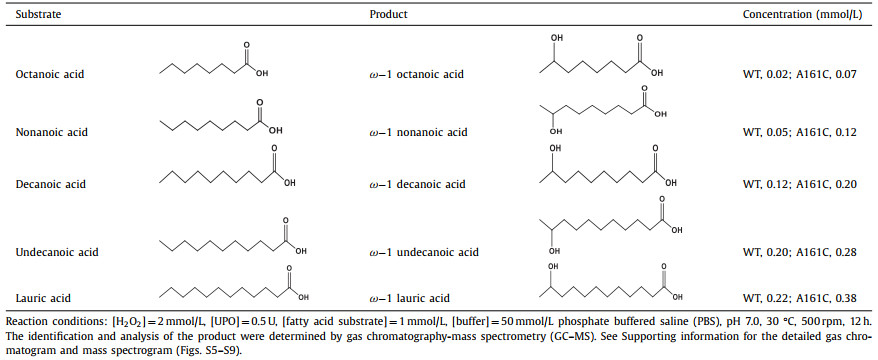 Table 1 The catalytic reaction of rDcaUPO and rDcaUPO-A161C on fatty acid substrates with different chain length. |