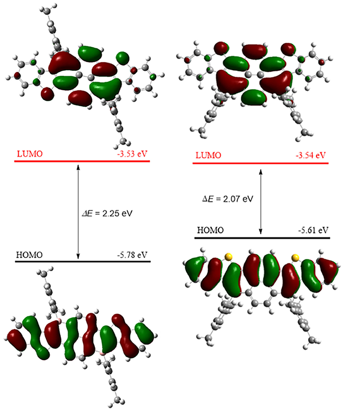 | Fig. 2. Frontier molecular orbitals of Anti-B2S2 and Syn-B2S2 from DFT calculations at B3LYP/6-31G(d, p) level. | |