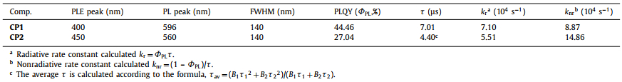 Table 1 Photophysical data of CP1 and CP2 in the crystalline state. |