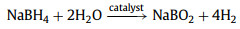 Hydrogen-related energy devices, including hydrogen-oxygen fuel cells, large-scale hydrogen power generation, and other hydrogen-powered devices, have incentivized the revolution of various hydrogen evolution technologies [1]. In particular, hydrogen storage materials catalytic hydrogen (H2) generation technology has been deemed an up-and-coming trend to realize a sustainable energy scheme [2]. Among the chemical storage sources of hydrogen, metal hydrides such as NaBH4, LiAlH4 and MgH2 have garnered tremendous recent attention [3–5]. Among them, NaBH4 is emerging as a central focus with a theoretical gravimetric hydrogen storage capacity of 10.6 wt%, excellent hydrolysis controllability, milder operation conditions, and high hydrogen purity, which can be applied to hydrogen production by hydrolysis [6,7]. Moreover, NaBH4 can facilely regenerate from its hydrolytic product, making it possible for the NaBH4-H2-PEMFC system to be a primary source device for on-demand power supply [8,9]. These advantages yield NaBH4 hydrolysis hydrogen production a bright future in real-world applications. Nevertheless, several hurdles need to be addressed before its commercial deployment, including the sluggish kinetic of NaBH4 self-hydrolysis and low H2 yield [10]. Exploring efficient catalysts is a feasible strategy for overcoming kinetic barriers for the hydrolysis of NaBH4. The ideal hydrolysis reaction of NaBH4 in the presence of a catalyst is given as Eq. 1 [11]: