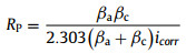 The βa and βc in the equation respectively refer to the anodic and cathodic Tafel slopes. The 2.303 is a constant.