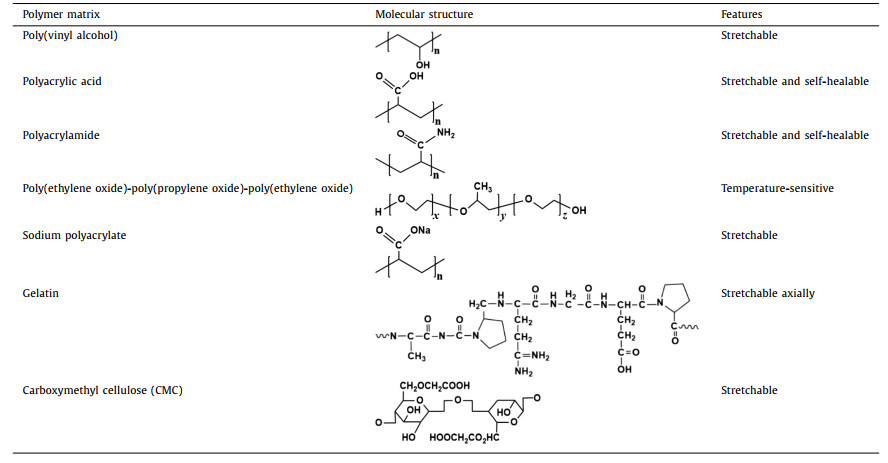 Table 1 Structures of hydrous gel polymer electrolytes. |