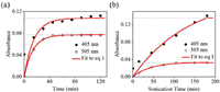 To better characterize the populations of each species over time, the absorbance at 405 and 505 nm for different polymers was monitored continuously. As presented in Fig. 3 and Fig. S7 (Supporting information), for all polymers, the absorbance at 505 nm is lower than the absorbance at 405 nm. In addition, it is important to note that for polymer with higher the molecular weight, the faster it reaches its maximum absorbance at 505 nm. This finding demonstrated that the chemical equilibrium could be tuned by the applied force. This deduction was further visualized by plotting the absorbance at 405 and 505 nm as a function of sonication time until the mechanostationary state [38], in which the steady-state concentrations of An-BNPO and An-BNPO reached. All data of different PMAs fitted well to Eq. 1: