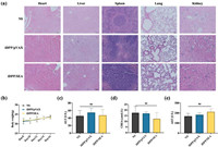 | Fig. 4. Safety assessment. (a) H&E staining of vital organs of each group. Scale bar: 50 µm. (b) Body weight of each group after treatment (n = 7). (c–e) The analyses of important blood biochemistry indexes of each group (n = 3). ns, P > 0.05. Data are mean ± SD. | |