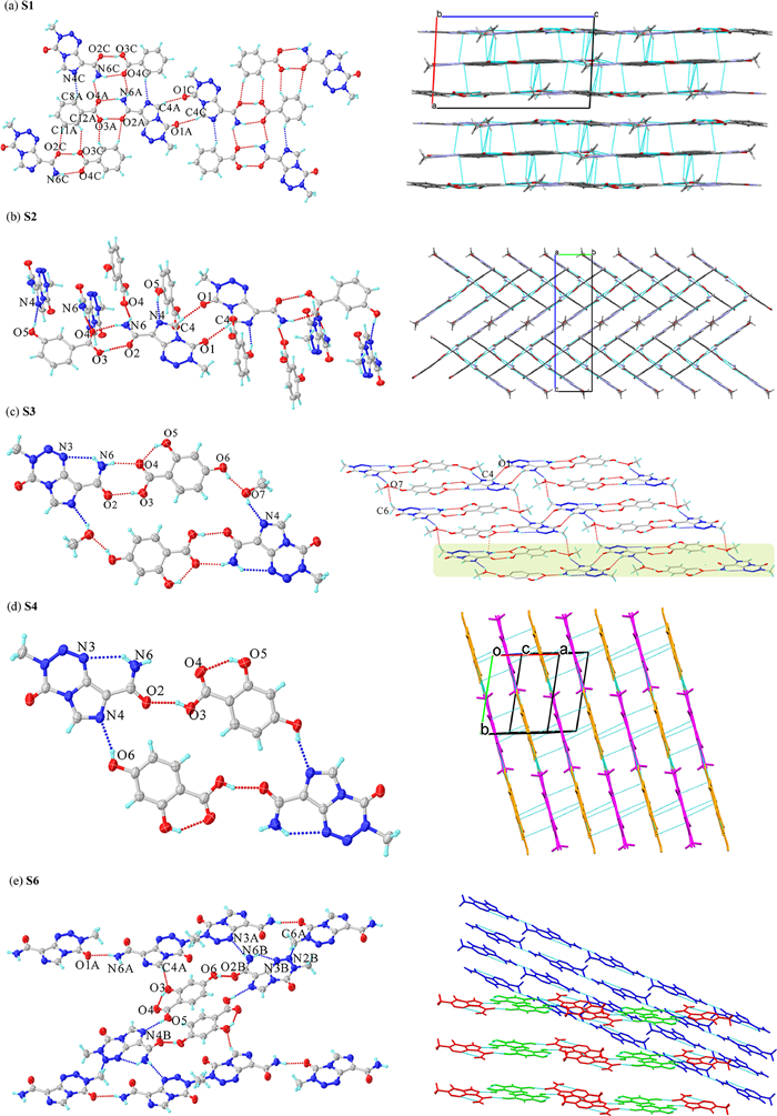 | Fig. 1. (a-e) Hydrogen-bonded motifs (left), and the 3D packing structure of the cocrystals S1-S6 (right). | |