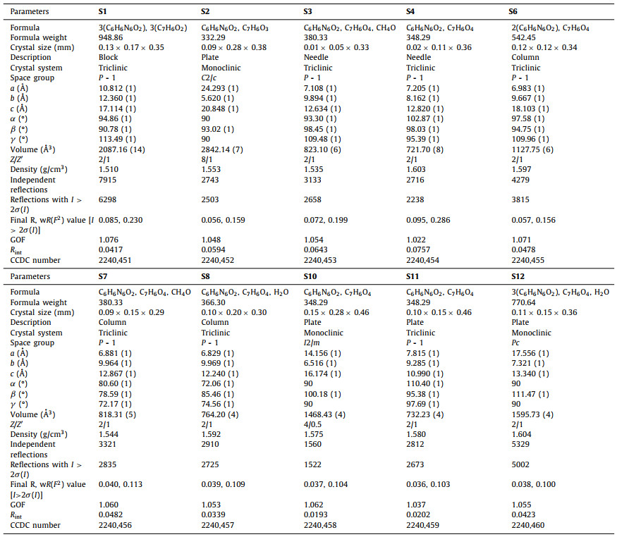 Table 2 Crystallographic information and structure refinement parameters for TMZ cocrystals. |
