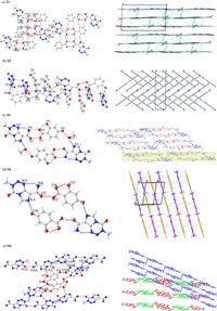 | Fig. 2. (a-e) Hydrogen-bonded motifs (left), and the 3D packing structure of the cocrystals S7-S12 (right). | |