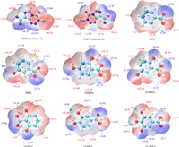 | Fig. 3. The positive and negative extreme values (kcal/mol) from MEPS of TMZ (conformers A and B) and CCFs (BZA, 3HBA, 24DHBA, 25DHBA, 26DHBA, 34DHBA, 345THBA). | |