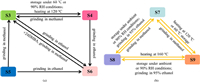 Phase transformations of four polymorphic forms of TMZ-24DHBA and three polymorphic forms of TMZ-25DHBA were conducted by using slurry, heating, and grinding methods to determine the thermodynamically stable form and phase transition processes.