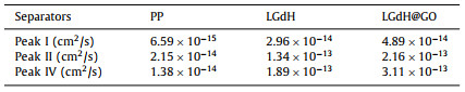 Table 1 Diffusion coefficients of Li ions for various separators. |