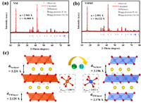 | Fig. 1. XRD and Rietveld refinement patterns of (a) NM and (b) NMMT samples. (c) Schematic illustration of the crystal structure of O3-type cathode. | |
