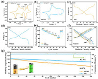 | Fig. 3. Cyclic voltammetry curves at 0.2 mV/s of (a) NM and (b) NMMT electrodes in the voltage range of 2.0–4.0 V. The charge/discharge curves within 2.0–4.0 V for (c) NM and (d) NMMT electrodes. (e) The rate capacity of NM and NMMT electrodes. (f) Galvanostatic charge/discharge curves at 1 C showing 200 cycles for NMMT electrode. (g) Cyclic performance comparation at 1 C for 200 cycles within 2.0–4.0 V. | |