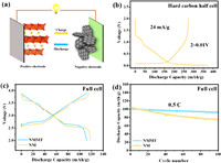 | Fig. 6. (a) Schematic drawing of the full cells. (b, c) The charge-discharge profiles of anode and full cells. (d) Cyclic performance comparation for full cells. | |