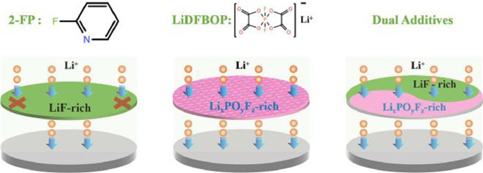 | Scheme 1. The combined effect mechanism of dual-additives in the formation of electrode-electrolyte interface. | |