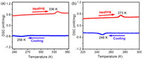 Needle crystals of 3-MBCC, 3-ABCC and BCC were obtained by evaporating slowly from the saturated solution. Their phase purity was confirmed by powder X-ray diffraction (PXRD). The experimental PXRD patterns of three compounds were consistent with the simulated PXRD based on the single crystal structure information (Fig. S1 in Supporting information). Thermogravimetric analysis shows that 3-MBCC, 3-ABCC, and BCC are thermally stable up to 411, 349, and 446 K, respectively (Fig. S2 in Supporting information). Then the differential scanning calorimetry (DSC) measurement was used to preliminary study the reversible structural phase transition of three compounds. DSC curves of 3-MBCC display distinctly reversible endothermic and exothermic peaks around 263/193 K (Fig. S3 in Supporting information). This result reveals that 3-MBCC undergoes a reversible structural phase transition. When –CH3 was replaced by –NH2, BE, 3-ABCC, its DSC curves present a pair of reversible thermal anomalies around 336/256 K (Fig. 1a). Besides, after CH3/H-substitution, DSC curves of BCC present a pair of reversible thermal anomalies at 273 (heating run) and 248 K (cooling run) (Fig. 1b). The phase transition temperature of 3-ABCC and BCC are 73 K and 10 K higher than that of 3-MBCC. It should be emphasized that the curves of three compounds exhibit obvious thermal hysteresis of 70, 80, and 25 K, separately, indicating first-order phase transition.