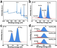 | Fig. 2. (a) XPS spectra of Au/ZrO2–800. The corresponding fine spectra of (b) Au 4f (c) Zr 3d and (d) O 1s. | |