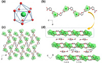 | Fig. 1. (a) Coordination geometry of Tb3+ center in Tb-FDA. (b) 1D chain of Tb-FDA. (c) 2D layer of Tb-FDA composed of π···π stacked chains. (d) 3D supramolecular framework composed of 2D layers and FDA2− counter anions. Atom codes: Tb (green), C (gray) and O (red). | |