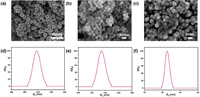 | Fig. 2. PS nanoparticles with particle sizes of (a) 200 nm, (b) 100 nm and (c) 40 nm. Hydrodynamic diameter distribution of PS nanoparticles with particle sizes of (d) 200 nm, (e) 100 nm and (f) 40 nm. | |