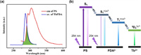 | Fig. 6. (a) Emission spectrum of nano PS at 254 nm and excitation spectrum of Tb-FDA. (b) Energy transfer process of Tb-FDA towards nano PS. | |