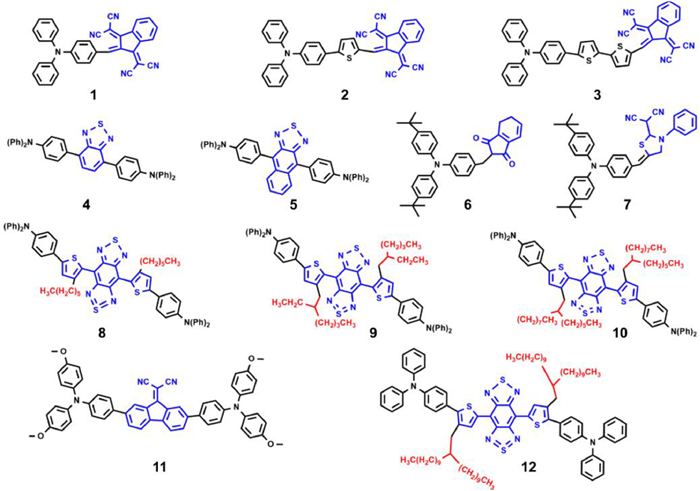 | Fig. 1. Typical TPA-AIEgens used for cancer diagnosis and treatment. Compounds 1–3 with extended π system to obtain the red-shifted and high fluorescence emission; compounds 4 and 5 with rigid and strong acceptor unit to promote the fluorescence quantum yield; compounds 6 and 7 with low ∆Est values to enhance ROS generation; compounds 8–10 with increased steric hindrance to red shift to NIR Ⅱ emission; compounds 11 and 12 with TICT state to boost photothermal conversion property. | |