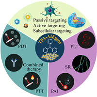 Up to now, TPA-AIEgens have been developed as novel molecular materials with photosensitive and photothermal capabilities, demonstrating the huge potential in tumor theranostics [29]. Thus, the design principles, targeting strategies, and the latest progress in biological imaging and treatment based on TPA-AIEgens photoactive agents are summarized in this minireview (Scheme 1). First, the principles of design TPA-AIEgens with near-infrared absorption and good biocompatibility were summarized. Next, TPA-AIEgens targeting strategies, including targeting to nuclei, cell membranes, cell organelles and tumors, were presented. Then it introduced the application of TPA-AIEgens in biological imaging and phototherapy for the most recent years. Finally, the photoactive agents based on TPA-AIEgens for cancer treatment were prospected. We hope this review can provide valuable information for design and application of TPA-AIEgens to accelerate their clinical translation.