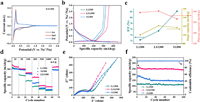 | Fig. 3. Electrochemical characterization of the HCs. (a) CV curves conducted at 0.1 mV/s. (b) Initial GCD curves measured at 20 mA/g. (c) The changing trends of ICE and slope/plateau region capacity calculated based on the second cycle discharge curves. (d) Rate performance at various current densities. (e) EIS measured after 5 GCD cycles. (f) Cycling capability at 100 mA/g. | |