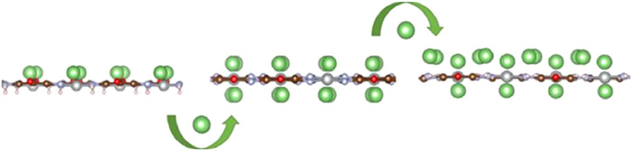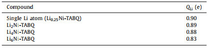 Finally, the electron behavior after Li atoms adsorbed on 2D Ni-TABQ monolayer was further studied. Fig. S3 (Supporting information) shows the band structure of Li6Ni-TABQ. It can be seen that during the lithium insertion process, there is a clear transition from semiconductor property to metallic property. Table 3 shows the charge transfer of the adsorption by single Li atom and different adsorption concentrations of Li. It can be seen that Li atoms contribute almost all valence electron and exist in the form of ions.