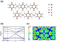 | Fig. 1. (a) Full-optimized structure of the 2D Ni-TABQ monolayer. (b) Band structure of 2D Ni-TABQ monolayer. (c) Electron localization function (ELF) diagram of 2D Ni-TABQ monolayer. | |