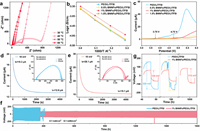 Fig. 2a is the Nyquist plots of 1% BNNFs/PEO/LiTFSI at different temperatures. The intrinsic resistance at 30–60 ℃ was deduced to be 757.60, 259.27, 68.75, and 21.02 Ω, respectively. The ionic conductivity of PEO-based SPEs was calculated from the electrical resistance, the thickness of SPEs, and the effective contact area between the electrolyte and the electrode. In order to explore the optimal addition amount of BNNFs, PEO-based SPEs with 0.5%, 1%, and 1.5% BNNFs were prepared, respectively, and their ionic conductivities were tested. As shown in Fig. 2b, the ionic conductivity of PEO/LiTFSI at 30 ℃ is 6.24 × 10−6 S/cm. The ionic conductivity gradually increases with increasing temperature and reaches 3.75 × 10−4 S/cm at 60 ℃. The ionic conductivity at 30–60 ℃ was only slightly higher when 0.5% BNNFs were added into PEO/LiTFSI, but was significantly improved with 1% BNNFs added. It reaches 1.31 × 10−5 S/cm at 30 ℃ and 5.05 × 10−4 S/cm at 60 ℃. The more obvious increase of ionic conductivity at room temperature may be attributed to the porosity and higher specific surface area of BNNFs, which facilitate its cross-link with PEO to effectively reduce the crystallinity of the PEO matrix. However, the ionic conductivity of BNNFs/PEO/LiTFSI decreased when the addition amount of BNNFs was further increased to 1.5%, indicating that 1% BNNFs was the optimized addition amount in this system. When the addition amount was too small, it had negligible effect on the PEO matrix and its ionic conductivity. On the contrary, when the additive amount increases to 1.5%, the agglomeration and sedimentation of BNNFs may occur and have negative impacts on the ionic conductivity [16]. According to the classical Arrhenius equation σ(T) = Aexp(-Ea/RT), the activation energy Ea of PEO-based SPEs can be calculated from the relationship between the ionic conductivity σ and the corresponding temperature in Fig. 2b, where T is the absolute temperature, A is the pre-exponential factor and R is the molar gas constant [41-43]. When 1% BNNFs were added, the Ea of PEO-based SPEs was 0.49 eV, which was smaller than that without BNNFs (0.54 eV). The lower the Ea, the faster ions migrate. Therefore, the ion mobility of 1% BNNFs/PEO/LiTFSI is higher than that of PEO/LiTFSI. In addition, Figs. 2d and e show the chronoamperometry curves of PEO/LiTFSI and 1% BNNFs/PEO/LiTFSI, respectively; the insets are the EIS plots before and after the test. The calculated Li ion transference number (tLi) of PEO/LiTFSI is 0.17, and for 1% BNNFs/PEO/LiTFSI is 0.18. It was found that the interaction between the BNNFs surface and PEO can promote the local relaxation and chain segment motion of Li+. On the other hand, BNNFs may also interact with LiTFSI, making LiTFSI more prone to dissociation, increasing the proportion of free Li+, and improving Li+ mobility [31].