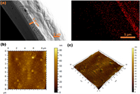 | Fig. 1. (a) Cross-section and mapping of Li-PVC. (b) Two-dimensional AFM image of Li-PVC. (c) Three-dimensional AFM image of Li-PVC. | |