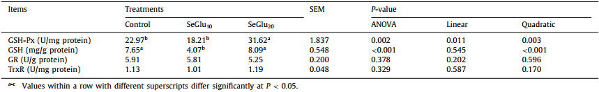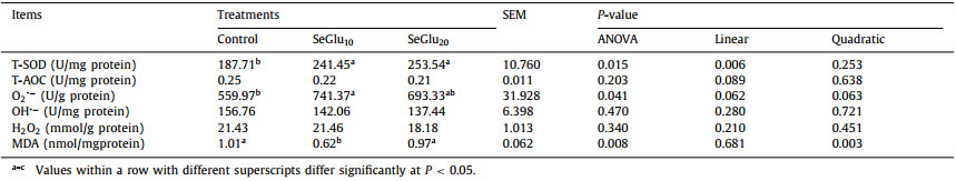 Table 3 Effects of in ovo feeding of SeGlu on free radical scavenging capacity in liver of chicks. |