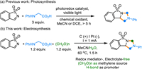 Organic electro-synthesis has gained more and more attention in sustainable organic synthesis because it can produce reactive radical intermediates through a direct single-electron-transfer manner [10-16]. Most electrochemical reactions require electrolyte additives [17-27] to ensure adequate ionic conductivity, which not only result in tedious operation procedures and the formation of chemical waste but also added production cost. Similar problems arise from the employment of redox mediators [28-35], which are frequently use to eliminate kinetic inhibitions associated with the heterogeneous electron transfer, avoid electrode passivation and achieve better selectivity [36]. Hence, the development of redox mediator- and electrolyte additive-free [37-44] electrochemical reactions is highly desirable.