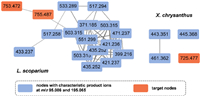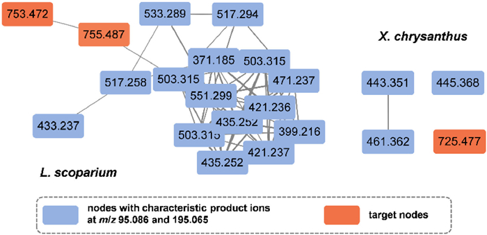 | Fig. 2. The building blocks-based networks for the petroleum ether fractions of the flowers of L. scoparium and the leaves of X. chrysanthus. | |