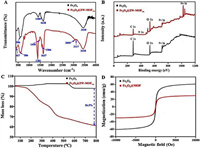 | Fig. 1. (A) FT-IR spectra, (B) TGA spectra, (C) XPS patterns, and (D) VSM profiles of Fe3O4 and Fe3O4@ZW-MOF. | |