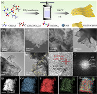 | Fig. 1. (a) Schematic diagram for the synthesis of 2D NiS/Ni-CdSNS. SEM images of (b) CdSNS and (c, d) 5NiS/Ni-CdSNS. TEM images of (e) CdSNS and (f, g) 5NiS/Ni-CdSNS. (h) HRTEM image and (i) selected area electron diffraction pattern of 5NiS/Ni-CdSNS. (j) Corresponding EDX elemental mapping images of the 5NiS/Ni-CdSNS sample. | |