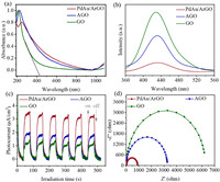 | Fig. 2. (a) Normalized UV–vis absorption spectra of different samples dispersed in water (0.05 mg/mL). (b) PL spectra, (c) time versus transient photocurrent density curves, and (d) EIS spectra of different samples. | |