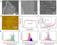 | Fig. 2. Morphological and structural characterizations of 2D mPDG heterostructures. (a) SEM image, (b, c) TEM images, (d) AFM image and (e) corresponding height profile, (f) nitrogen adsorption-desorption isotherm and pore size distribution profile, (g) C 1s, (h) O 1s, and (i) N 1s XPS spectra of mPDG-2. | |