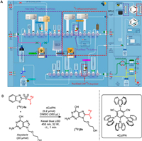 | Fig. 17. Schematic of the Synthra/photoreactor setup. Reproduced with permission [29]. Copyright 2020, The Author(s), under exclusive licence to Springer Nature Limited. | |