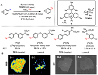 | Fig. 19. Late-stage C(sp2)−H radiofluorination of bioactive molecules (A) and the representative maximum intensity projection (MIP) PET and CT imaging of [18F]7i in TPA-treated and control mouse ears (B). Reproduced with permission [49]. Copyright 2019, The American Association for the Advancement of Science. | |