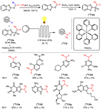 | Fig. 11. Photocatalytic carbon isotope exchange of carboxylic acids with [11C]CO2. | |