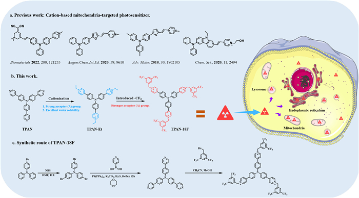 | Fig. 1. (a) Previous work: Cation-based mitochondria-targeted PSs. (b) This work. (c) Synthetic route of TPAN-18F. | |