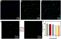 | Fig. 4. Confocal fluorescence images of 3T3 cells co-stained with (E)-SSB-(E)-FMR/CB[8] ([(E)-SSB-(E)-FMR] = [CB[8]] = 5 × 10−6 mol/L) and LysoBlue (5 × 10−6 mol/L) for 0.5 h: (a) LysoBlue (Ex. 405 nm, Em. 425 nm); (b) (E)-SSB-(E)-FMR/CB[8] (Ex. 405 nm, Em. 532 nm). (c) Merged image of (a) and (b); (d) The evolution and reversibility of confocal fluorescence images of 3T3 cells co-stained with (E)-SSB-(E)-FMR/CB[8] in the same area upon alternate 405 nm and 254 nm laser irradiation. (e) Relative cell viabilities of (E)-SSB-(E)-FMR/CB[8] at different concentrations. | |