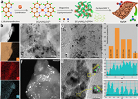 | Fig. 1. (a) Schematic diagram of the preparation of Cu/CN material. (b) HAADF image and element mapping of Cu/CN. (c, d) TEM images of Cu/CN. (e) Particle size distribution of Cu nanoparticles in Cu/CN. HAADF image (f) and high resolution TEM image (g) of Cu/CN. | |