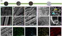 | Fig. 2. The morphologies characterizations. (a) Digital photos of the different steps. SEM images of (b, c) CC, (d, e) CC@Mn/Zn-MOFs, (f, g) CC@ZnMn2O4-MnO, Li-(CC@ZnMn2O4-MnO) ((h, i) Surface; (j, k) cross-section). (l) EDS elements distribution of the CC@ZnMn2O4-MnO electrode (Mn, Zn, O, C). | |