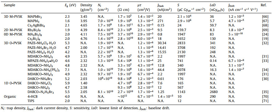 Table 1 The intrinsic properties and X-ray detection performance of O-PVSKs. |