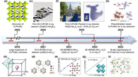 | Fig. 1. Timeline of achievements in the development of O-PVSKs materials and their X-ray detection applications. (a) The discovery of O-PVSK. Reproduced with permission [27]. Copyright 2002, American Chemical Society. (b) The expansion of O-PVSK members. Reproduced with permission [28]. Copyright 2018, The Authors, exclusive licensee AAAS. (c) The first 3D DABCO—NH4Br3 X-ray detector. Reproduced with permission [29]. Copyright 2020, Wiley-VCH. (d) The first 1D DABCO—NH4I3 X-ray detector. Reproduced with permission [30], Copyright 2021, Cell Press. (e) X-ray detection with a sensitivity of -2000 µC Gyair−1 cm−2 based on MDABCO—NH4I3. Reproduced with permission [31]. Copyright 2021, Wiley-VCH. (f) The first flexible X-ray detector based on PAZE-NH4X3·H2O with a record sensitivity of -3700 µC Gyair−1 cm−2. Reproduced with permission [32]. Copyright 2022, Wiley-VCH. (g) X-ray detection with a record LoD of -0.14 nGy/s based on MPAZE-NH4X3·H2O. Reproduced with permission [33]. Copyright 2023, Wiley-VCH. (h) Pseudohalide based MDABCO—NH4(PF6)3. Reproduced with permission [34]. Copyright 2023, Wiley-VCH. (i) B-site engineering of DABCO—N2H5-X3. Reproduced with permission [35]. Copyright 2023, Wiley-VCH. | |